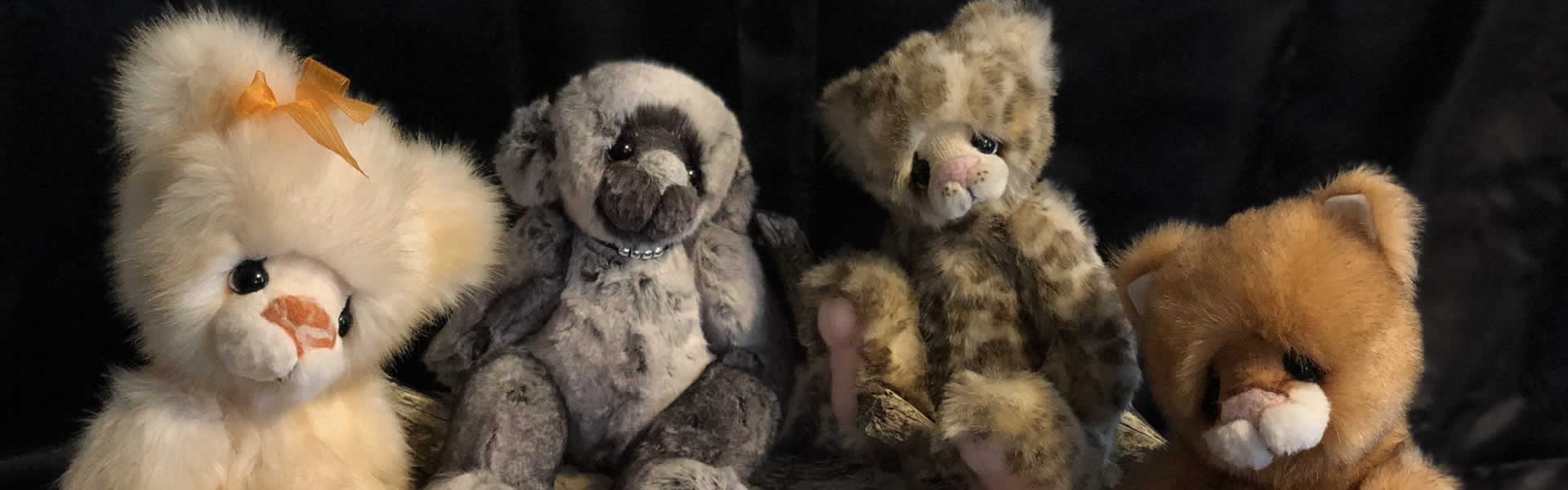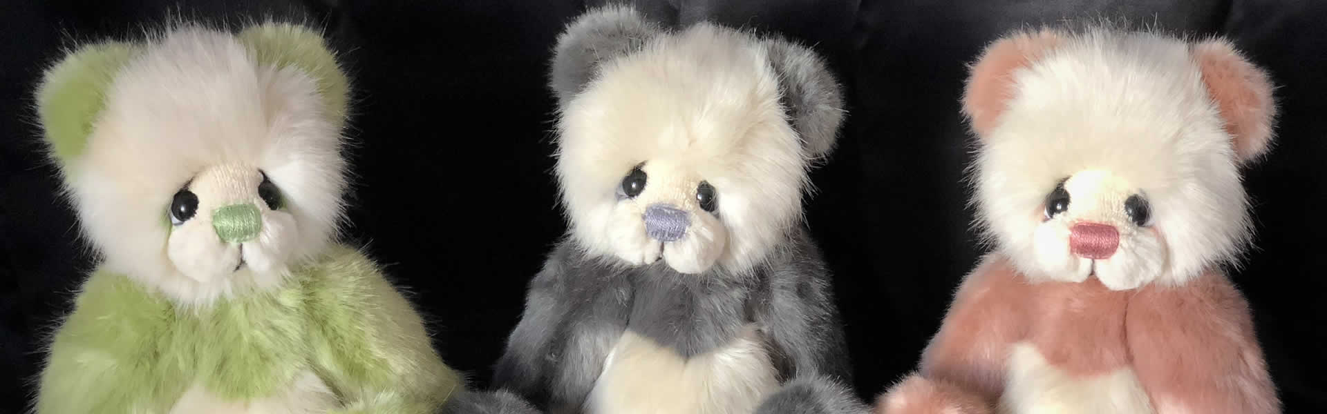 The materials I use are all carefully chosen of the finest quality mohair and faux fur, cashmere is used for foot pads and the glass eyes are hand crafted here in England. As a finishing touch to a Kaycee Bears™ I place a crystal in the footpad of each creation that is born.